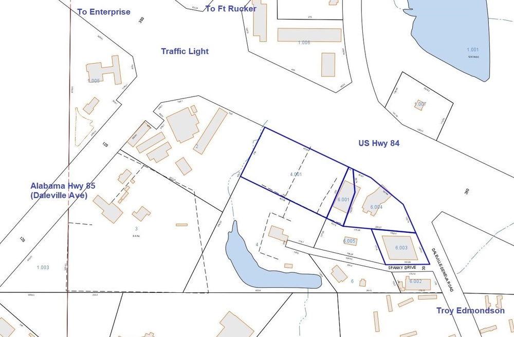 Excellent location for Office, Retail, Hospitality on US HWY 84. A total of 3.95 +/- acres available as is or ready for redevelopment, close to Ft. Rucker and aviation/industrial area. a. Daleville and Ft. Rucker are home to many defense contractors. The area offers many experienced, trained workforce for pilot training and aircraft mechanics.